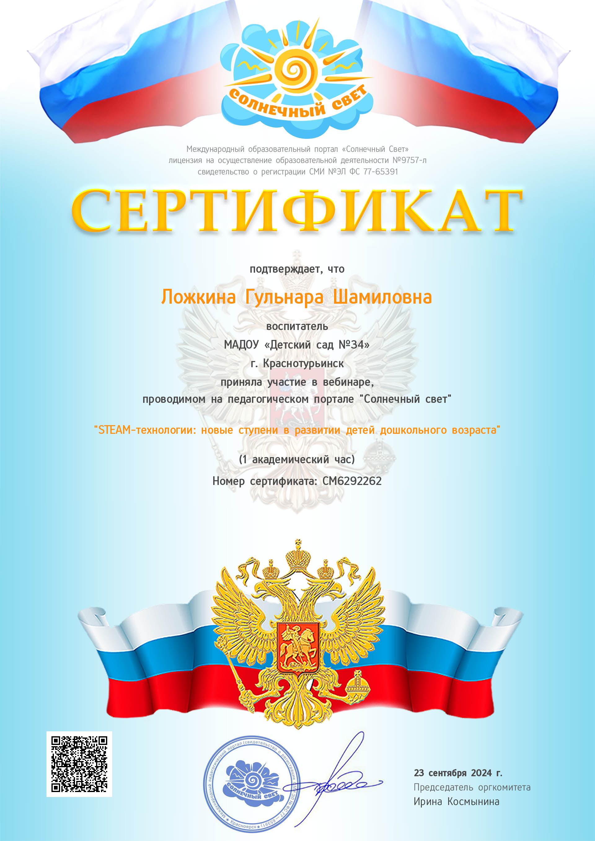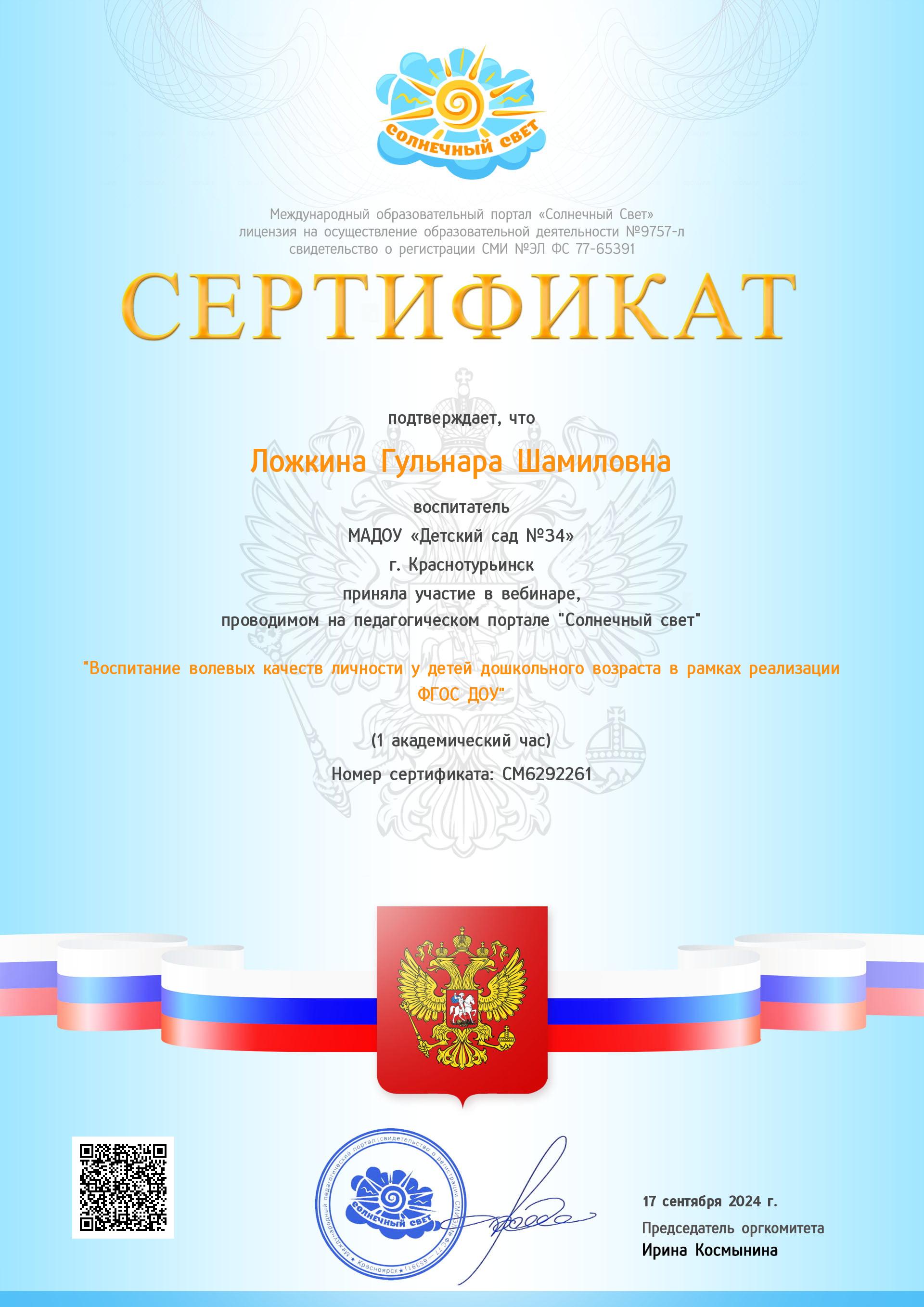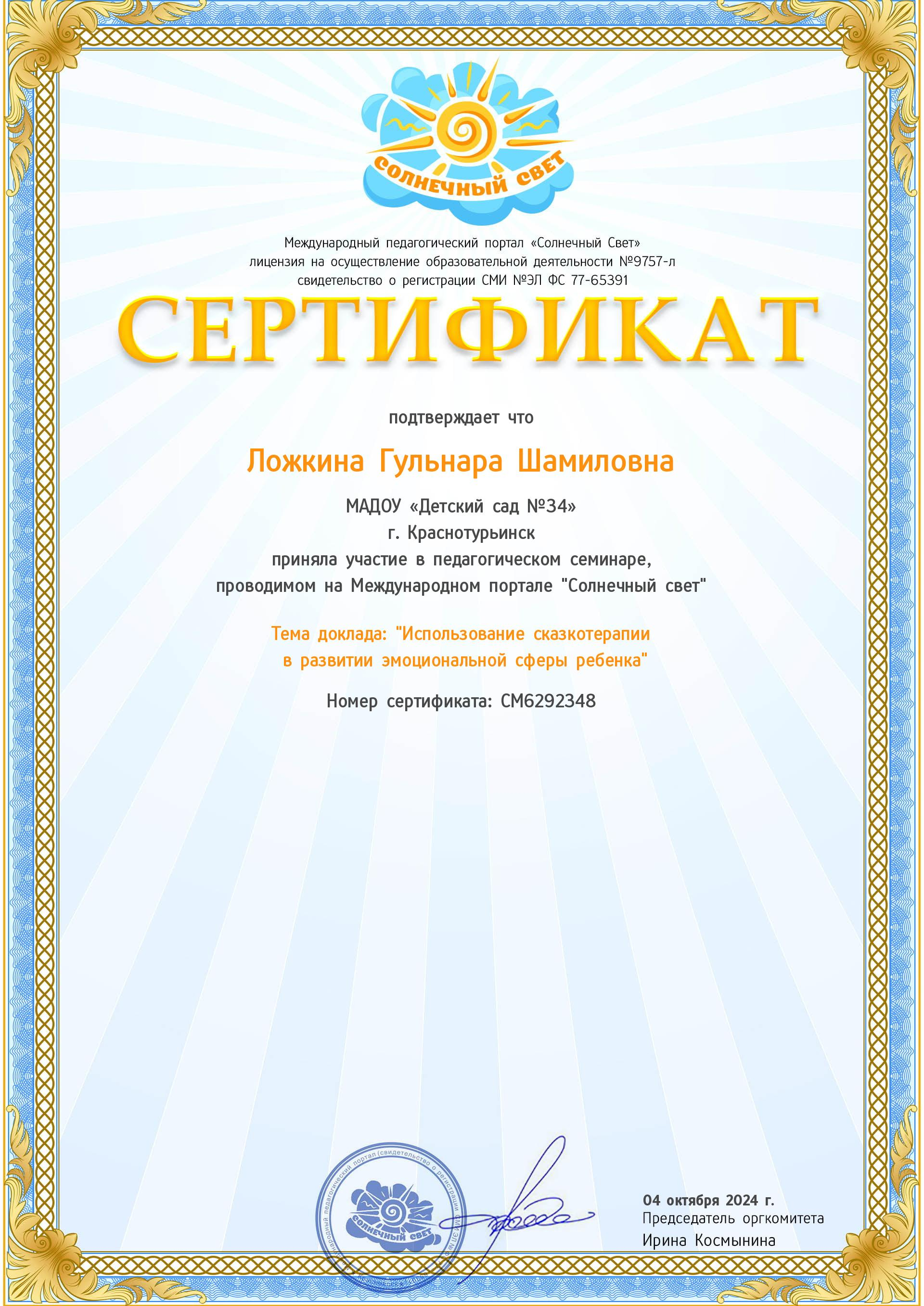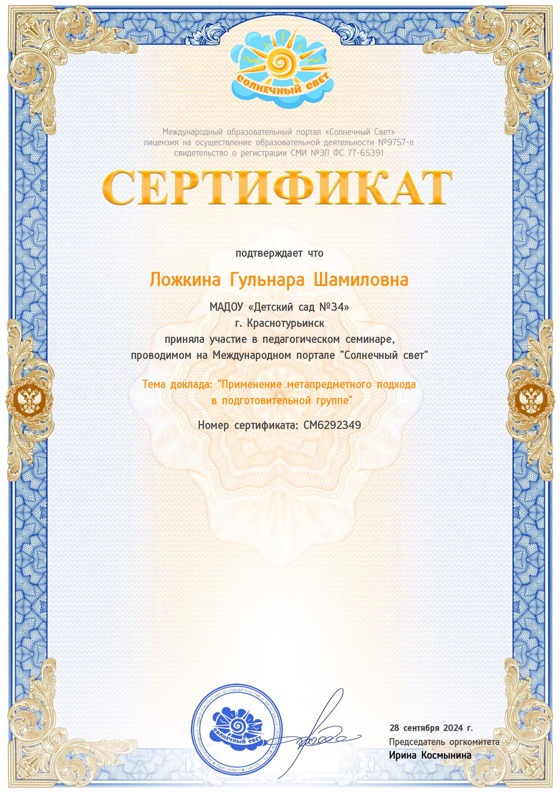 сертификат участия в семенаре
