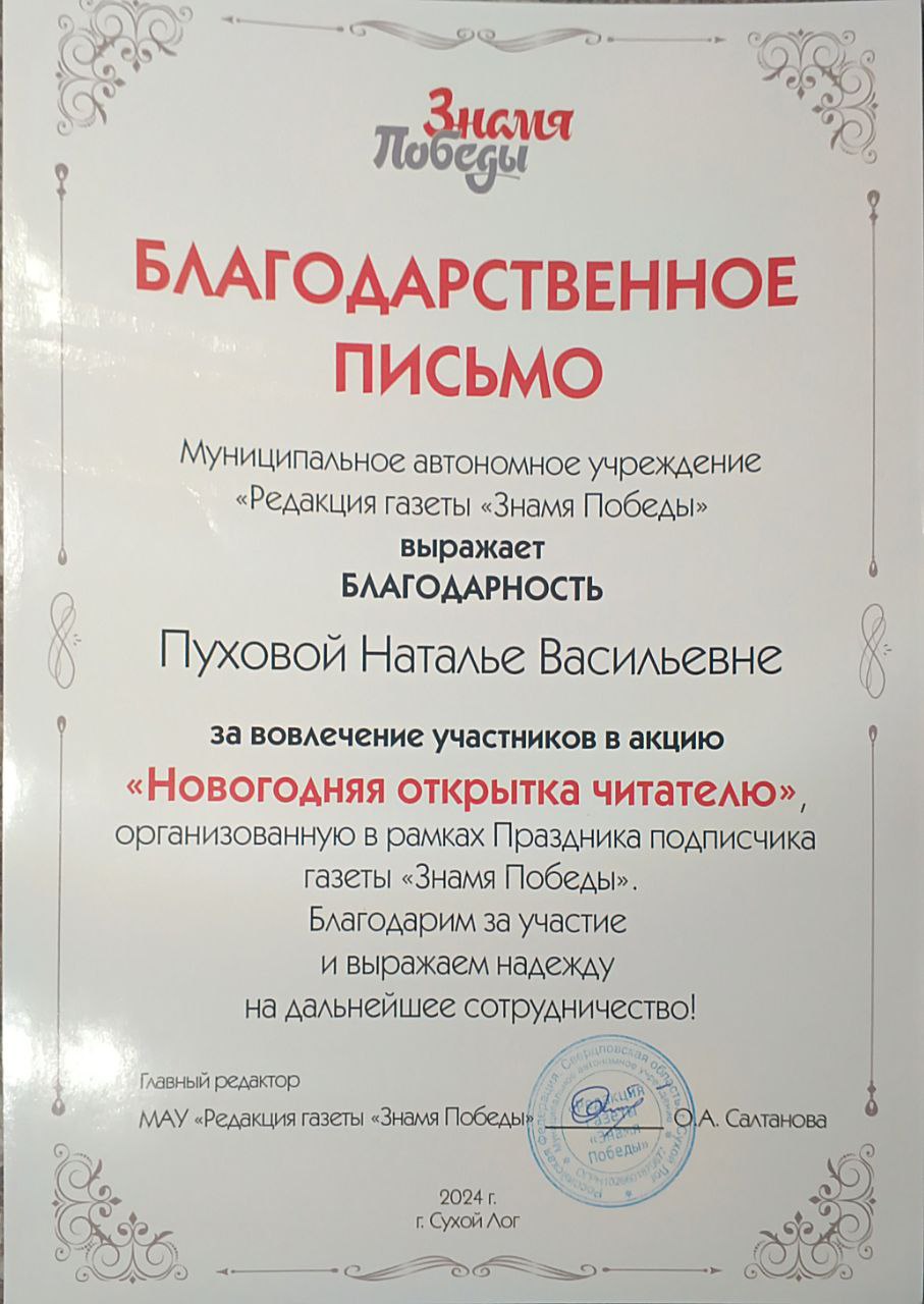 Акция "Новогодняя открытка читателю" МАУ "Редакция газеты "Знамя Победы", 2024г