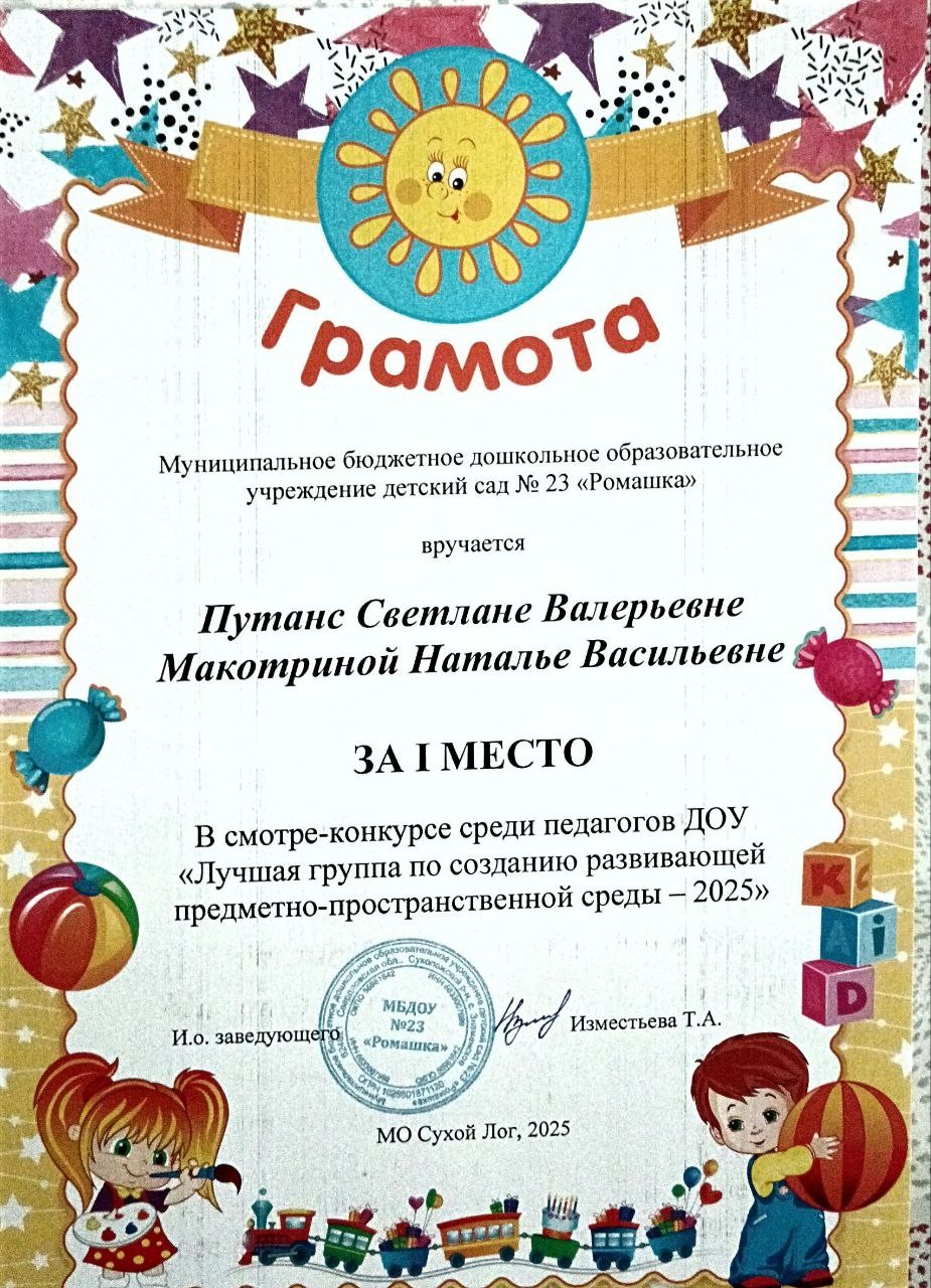 Смотр -конкурс среди педагогов ДОУ "Лучшая группа по созданию РППС-2025" МБДОУ №23 , 2025г.