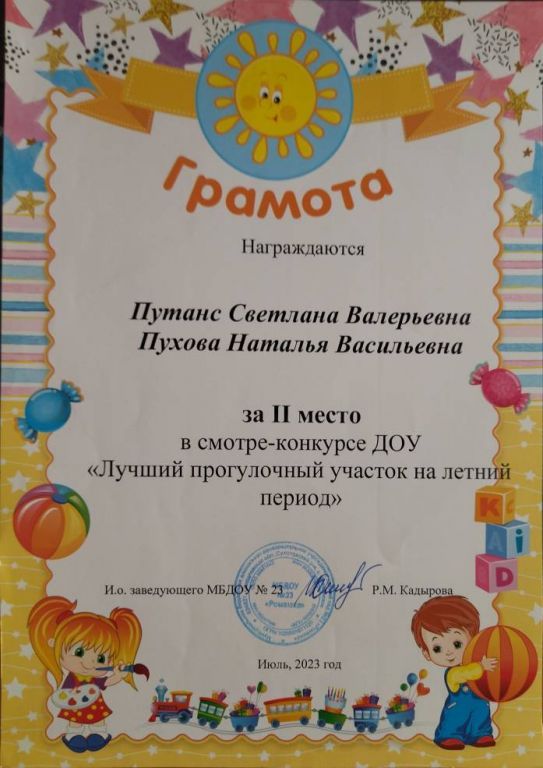 Смотр-конкурс ДОУ "Лучший прогулочный участок на летний период" МБДОУ №23, 2 место, 2023 г