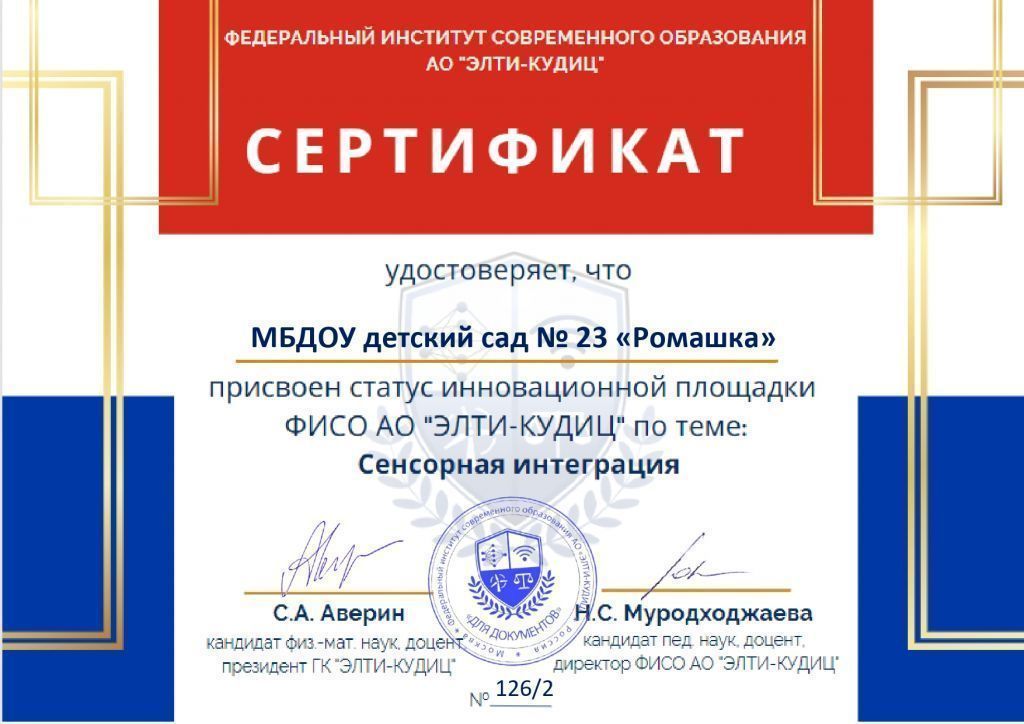 Сертификат инновационной площадки ФИСО АО ЭЛТИ-КУДИЦ