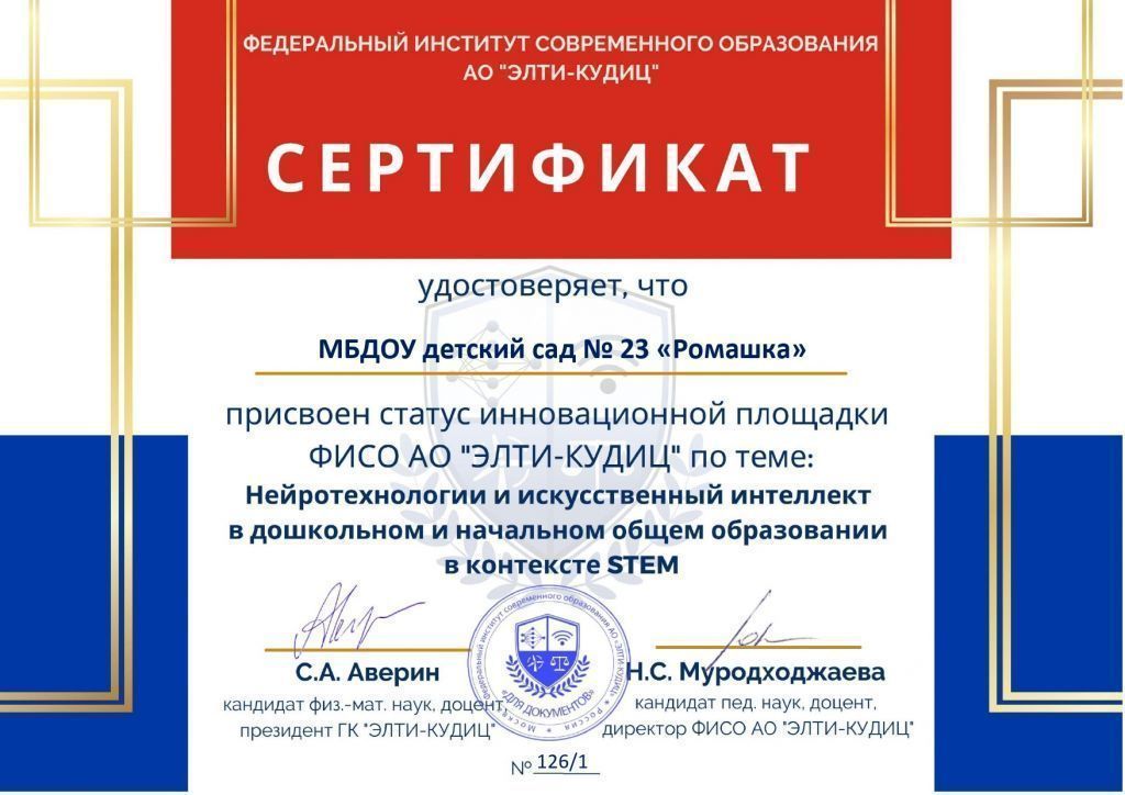 Инновационная площадка ФИАСО "ЭЛТИ КУДИЦ" по теме : Нейротехнологии и искусственный интеллект в дошкольном и начальном общем образовании в контексте STEM"