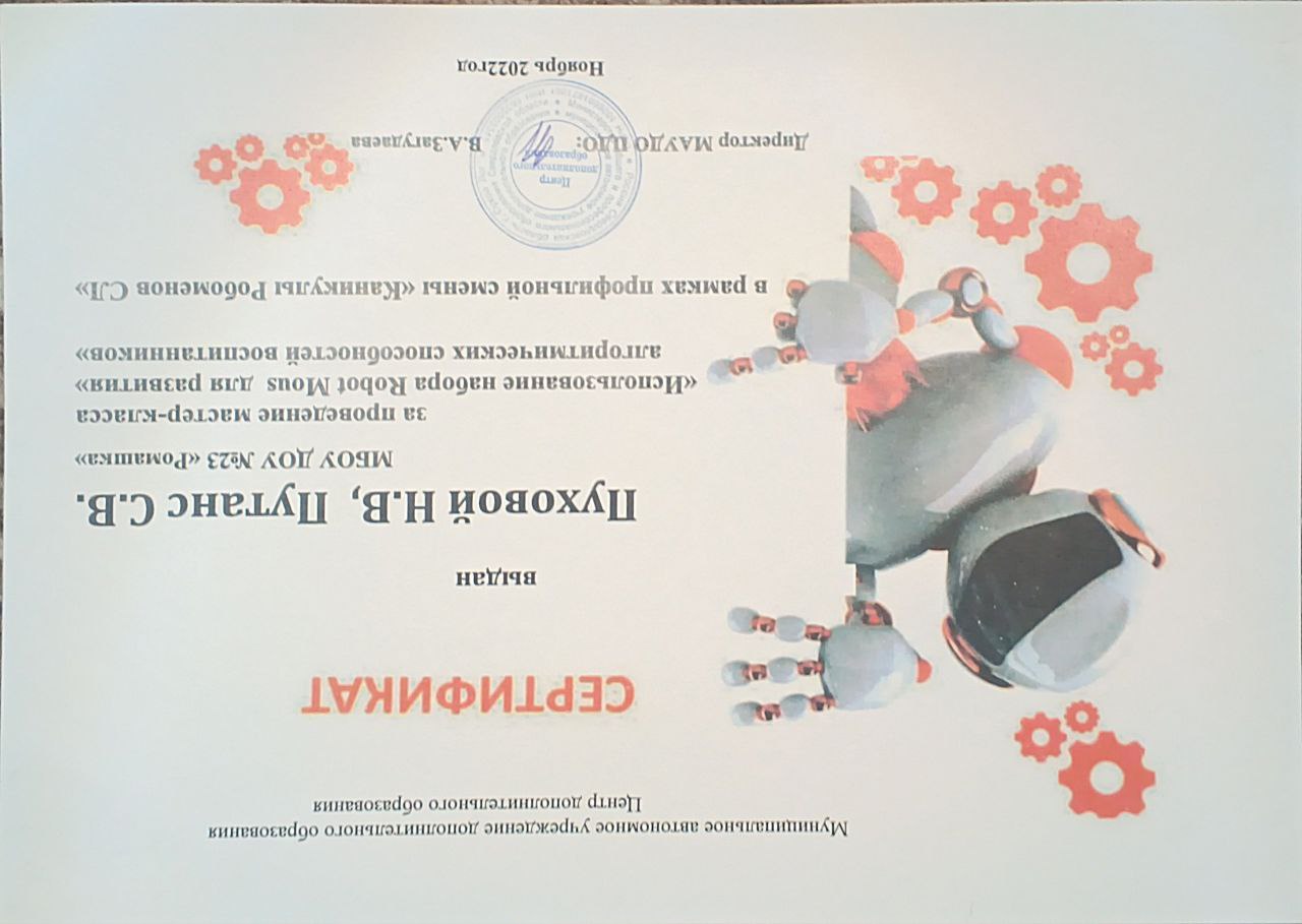 Мастер -класс "Использование набора Robot Mous для развития алгоритмических способностей воспитанников" , 2022г.