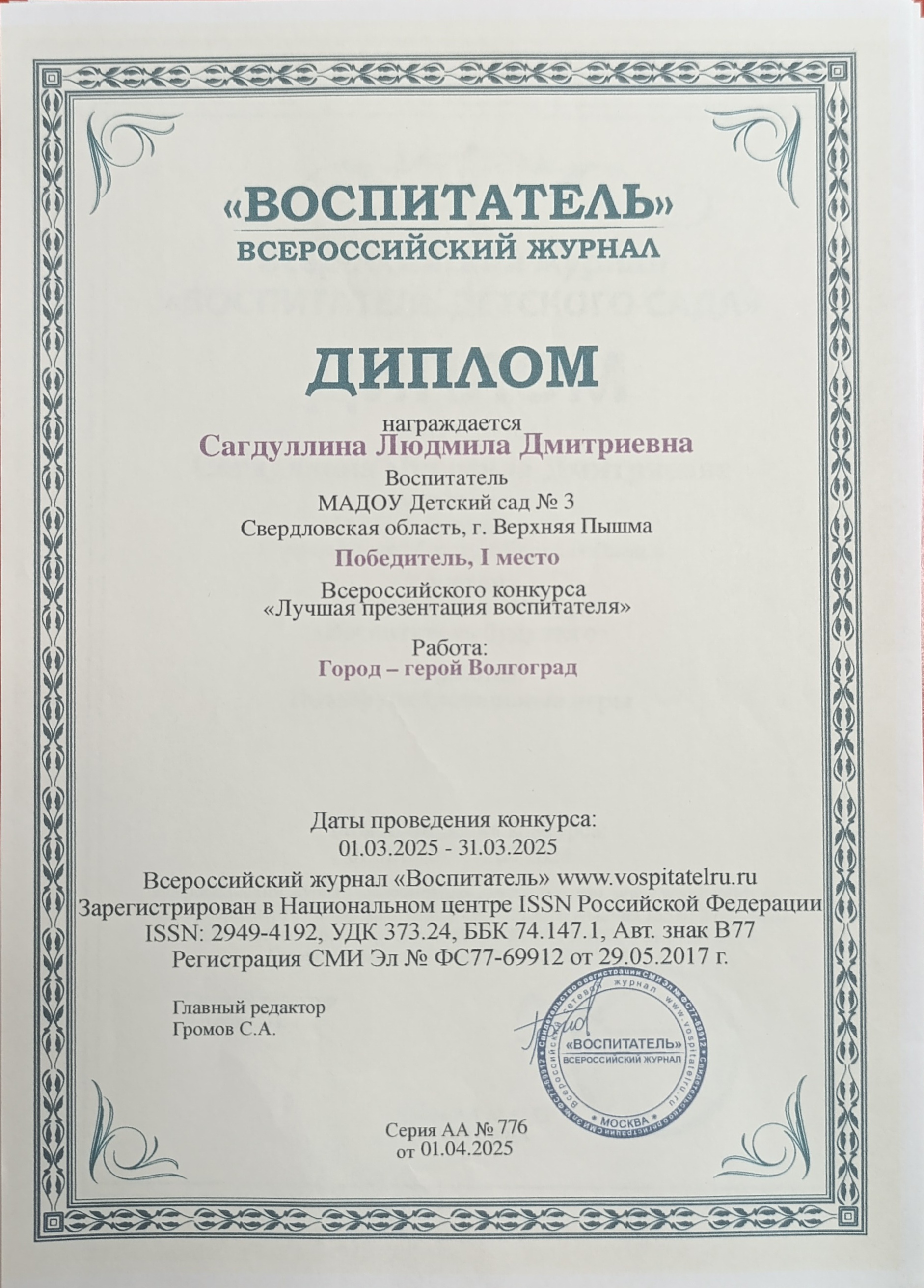Это даёт толчок в профессиональном развитии и самореализации. Также, даёт возможность продемонстрировать свои достижения, обменяться опытом с коллегами, получить новые знания и умения.