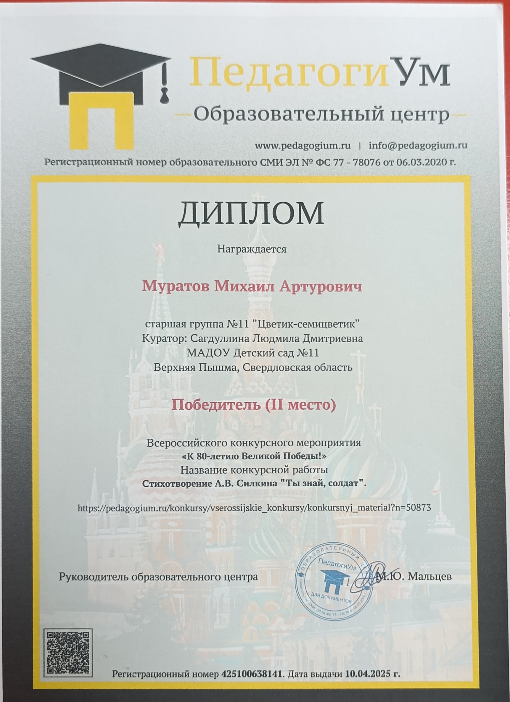 Участие воспитателя в конкурсах очень важно.