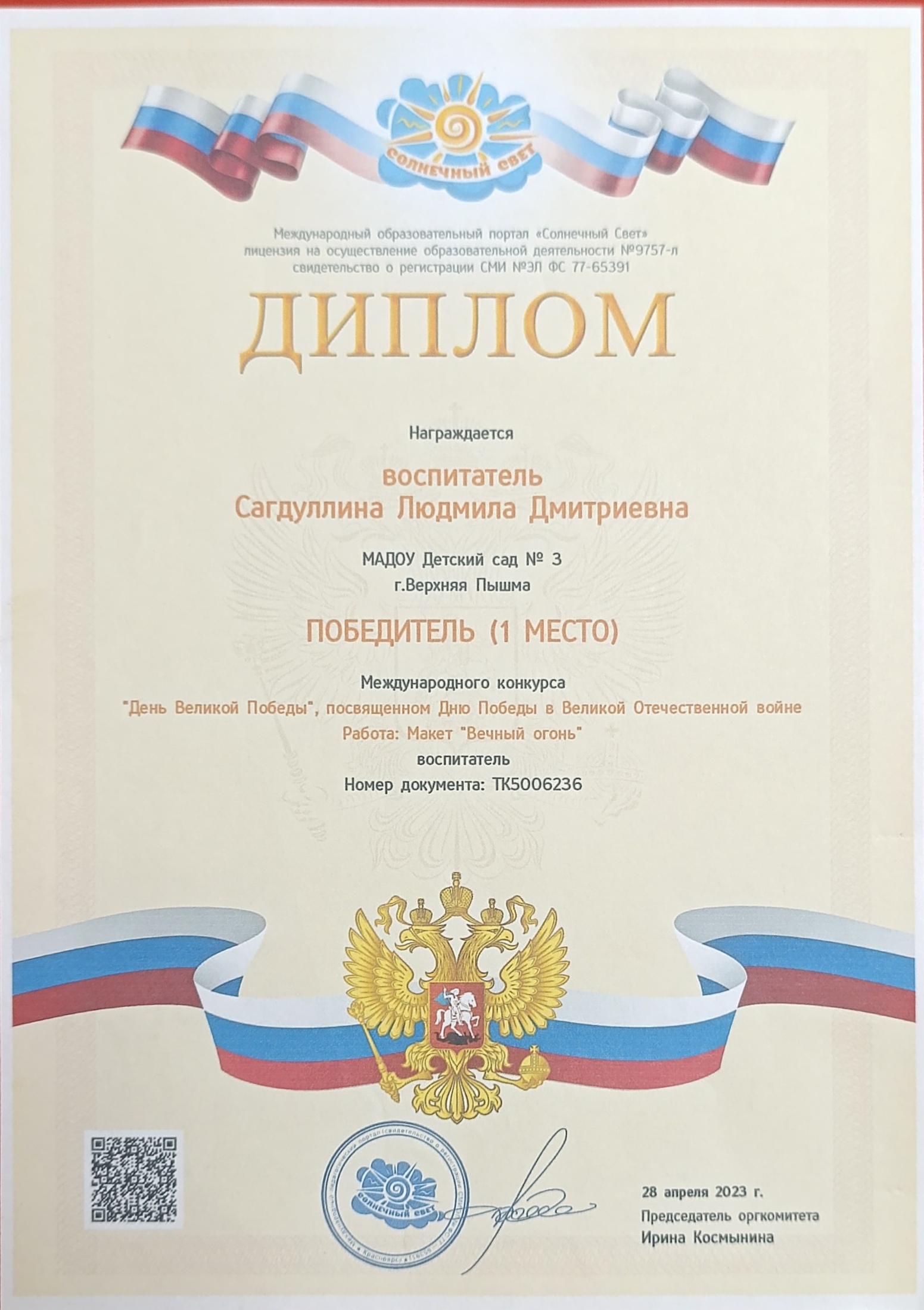 Положительно сказывается на рейтинге образовательного учреждения. Победы и призовые места говорят о высоком уровне профессионализма педагогического коллектива.