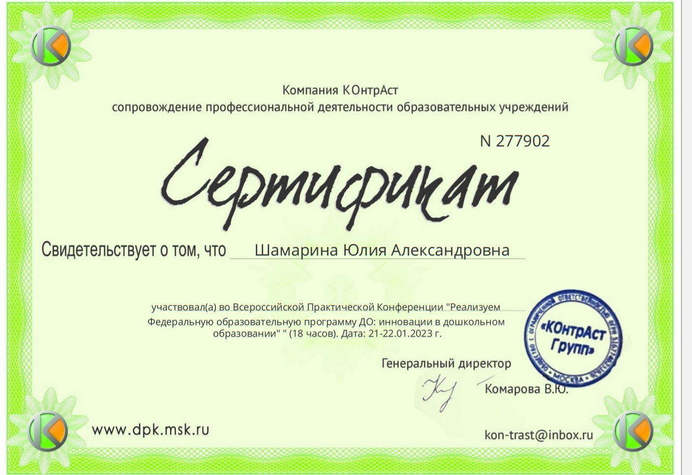 1. Всероссийская Практическая конференция «Реализуем Федеральную образовательную программу ДО: инновации в дошкольном образовании (18 часов)