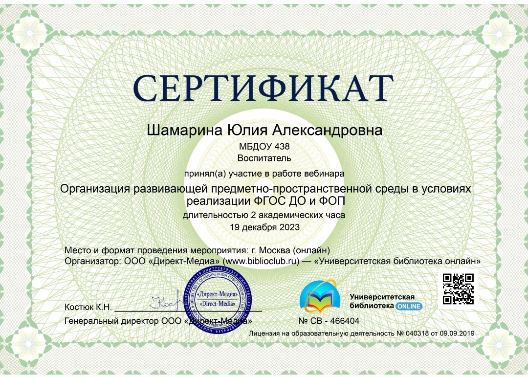 6. Вебинар «Организация развивающей предметно-пространственной среды в условиях реализации ФГОС ДО и ФОП (2 часа)