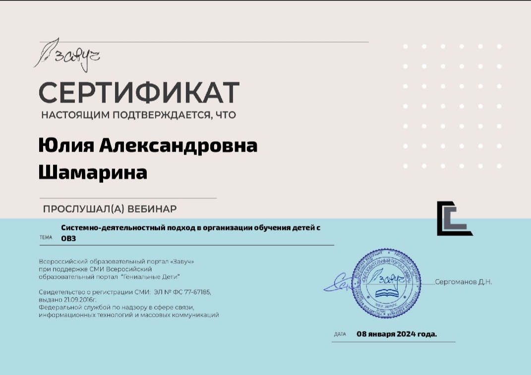 5. Вебинар «Системно- деятельностный подход в организации обучения детей с ОВЗ