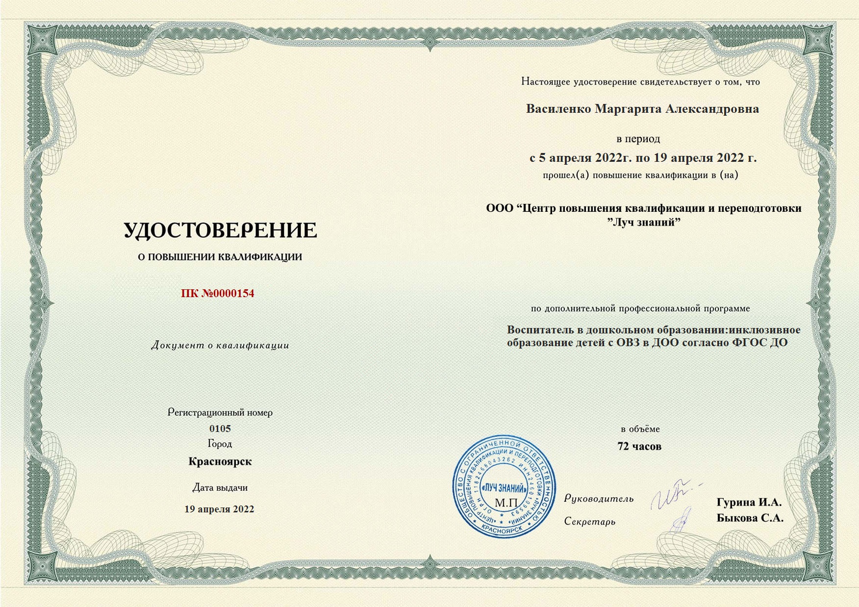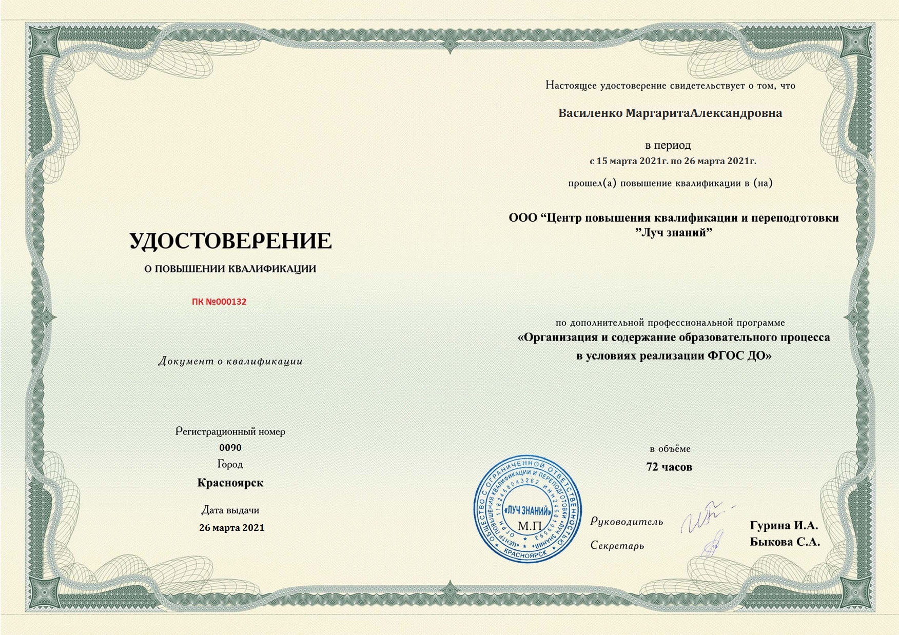 Василенко Маргарита Александровна