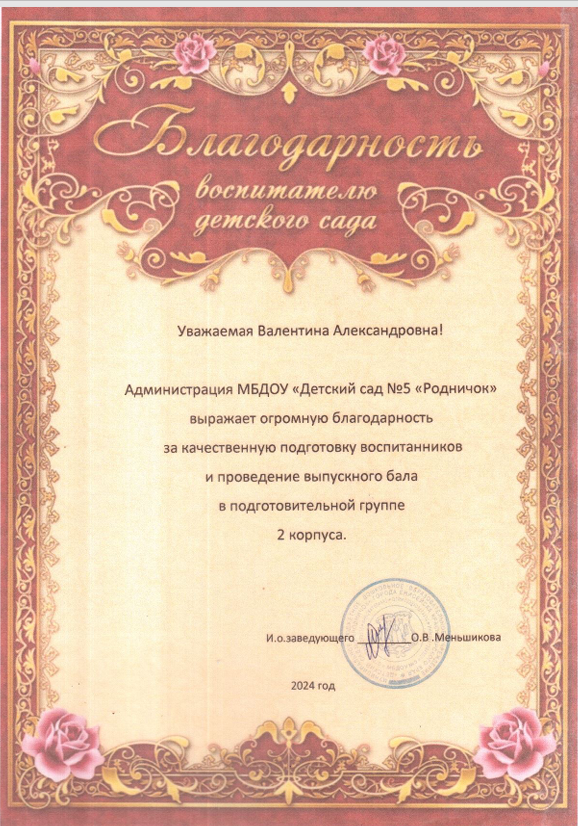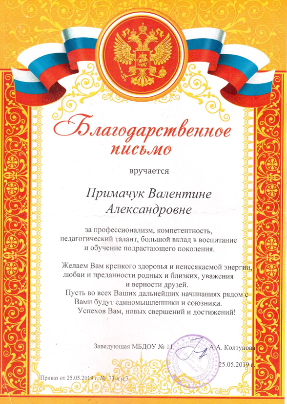 благодарственное письмо