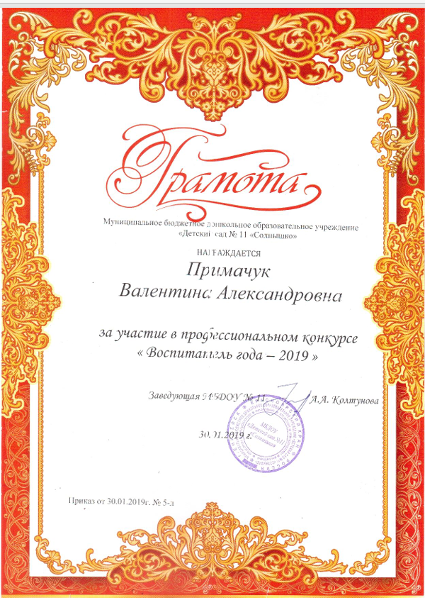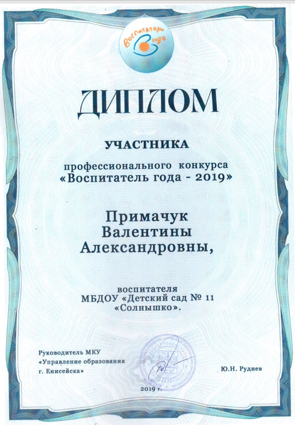Диплом участника "Воспитатель года -2019"